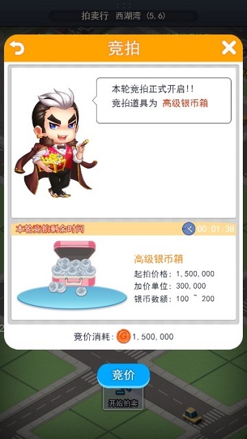 银币箱竞拍每天10:00-14:00、19:00-21:00开启,一共有4种规格,内藏不同数量的银币。玩家消耗G币参与竞拍,价高者得。