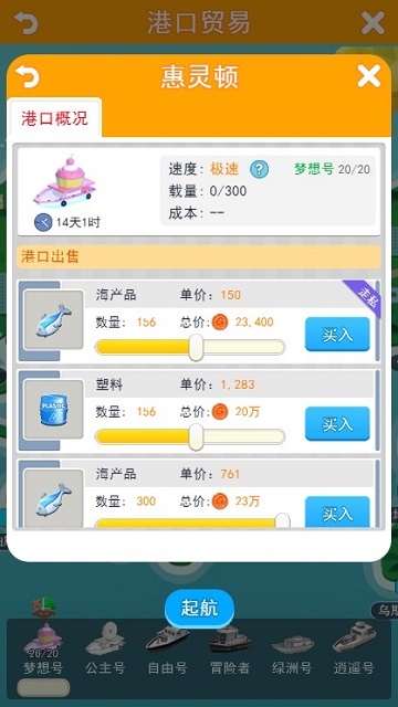 顾名思义,航海贸易系统就是一个可以让玩家在全球自由航行,选择一个港口买入货物,再寻找另外一个港口将货物卖出,从中赚取差价的玩法。每个港口的货物和价格都是随机的,很有点大航海的味道。