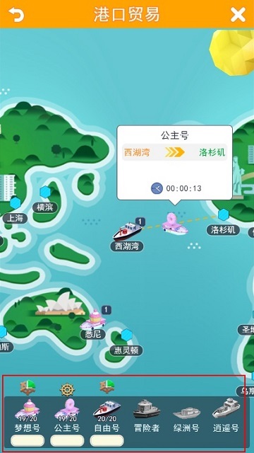 细心的老板们可能已经注意到,航海贸易系统界面最下方有一排船只,越后面的船载货量越大,拉的货多,自然利润也更高。除了第一艘梦想号使用G币就可以购买之外,其他的船都要求一定的vip等级,而且购买的时候需要消耗金币或银币。