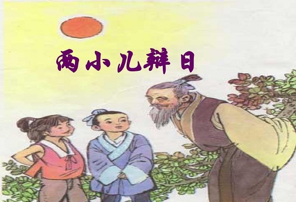 孔子到东方游历,看见路旁有两个小孩在争辩,孔子问他们争论的原因。一个小孩说:“我认为太阳刚出来的时候离人最近,到了中午离人最远。”另一个小孩认为太阳早上离人最远。