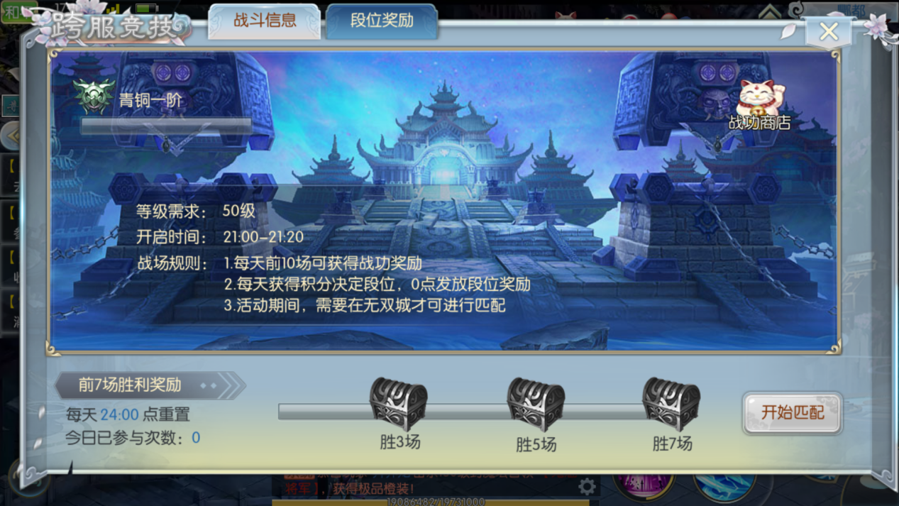 4、每场战斗可获得一定数量的跨服竞技积分,积分用于提升段位等级;