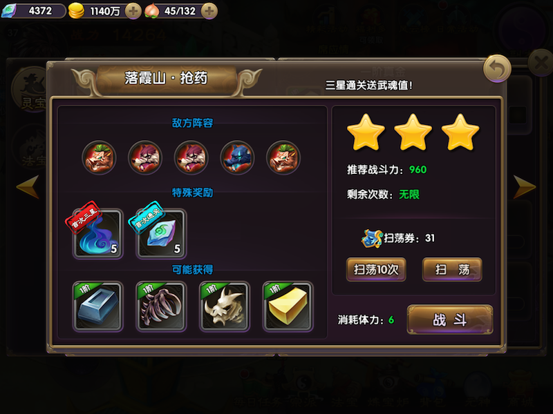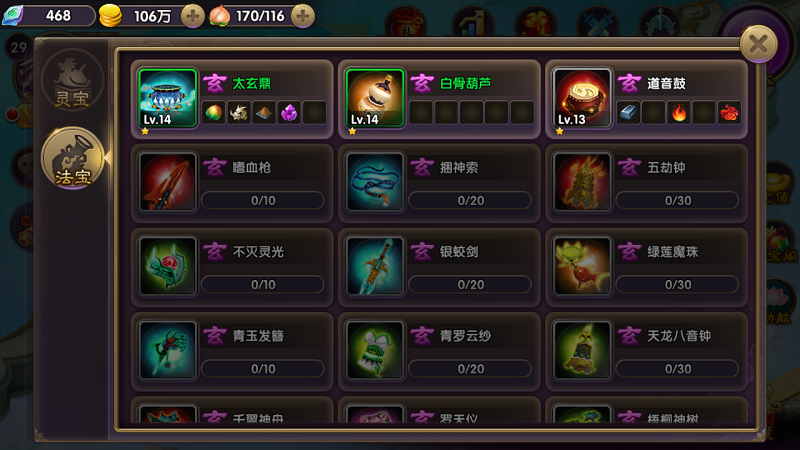 法宝进化:收集一定数量的法宝宝印,可以进化法宝的星级,星级越高,法宝威力越大,属性越好。