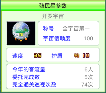 殖民星参数包括殖民星的称号、宇宙信赖度、速度、护盾等。