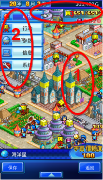 游戏时界面主要展示地图面貌,菜单为隐藏状态。玩家可在此界面进行建筑。此画面可以进行缩放和上下左右的方向移动。