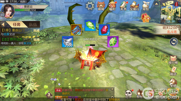 “天书活动”是玩家15级后开放的一个系统,该系统中集合了绝大部分的日常活动,其中的“护送李英琼”、“赛跑比赛”可以直接通过参与活动来获得绑定银两。而“秘宝蒙尘”则可以通过完成蜀仙盟的各种委托获得的藏宝图,在蜀门大地寻得数量可观的绑定银两。