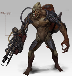 受到光能星人器官移植和病态的肉体改造等因素,这些来自地球,曾经的善良士兵们早已成为约30%钢铁所构成的扭曲变异体。这些生化兵配中距离射程火焰喷射器,能在短短几秒钟内造成不容小觑的伤害。