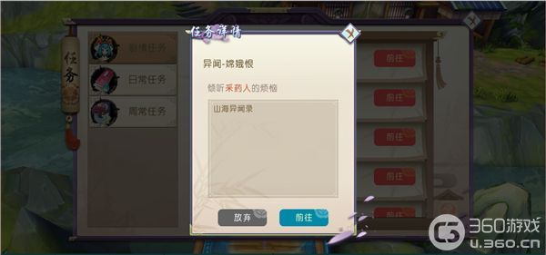 当大人等级达到一定等级,就可以开启山海世界中的异闻任务了,这些异闻任务无法主动接取,只能通过各位大人的等级提升来获得哦,在这些奇妙的异闻故事中,各位大人可以见识到各类奇异的事情。