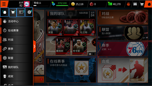 在线赛事:在线赛事可以获得很多奖励并收集对应的物品用以合成杰出球员。