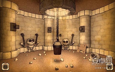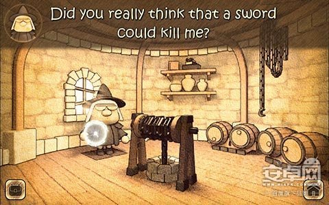 初进游戏,少见的羊皮纸纸绘风格,透出一股浓郁的中世纪欧洲童话的气息。然而突然传来一阵老巫婆惊悚慎人的笑声,揭示了这其实是一款暗黑系的解谜冒险游戏。