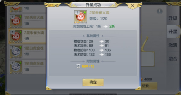首先我们要弄清楚我们为什么要让圣魂升星。升星有两个作用:第一可以提高圣魂的强化次数,第二可以提高可显示的附加属性的条数。