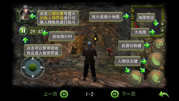 点击右上角的帮助按钮,可以查看游戏操作。注意,左手控制人物的行走方向,右手控制人物的视角方向。