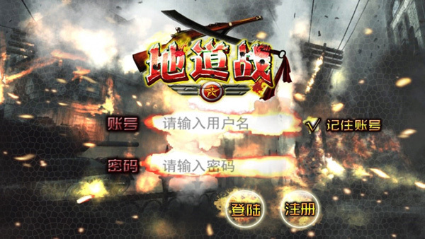 打开《地道战》游戏后,先进行账号注册,只需要简单的输入账户和密码就可以注册喽。成功登陆后,之后就不需要再注册登陆了,直接进入游戏界面。