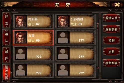 2.邀请式。在社交界面中选择附近玩家,然后在打开的玩家界面中,直接选择玩家邀请组队即可,本地图的玩家都会被显示在附近玩家界面中。或在组队面板中,选择附近队伍申请入队。