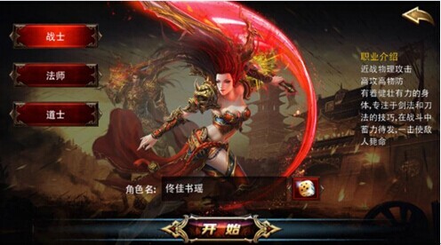 烈焰创建角色,首次登陆游戏,会进入创建角色界面。经典战法道三种职业可选择。各职业均有男、女性角色。手指滑动选择,再输入角色名就可以开始游戏,开启传奇般的烈焰之旅了。