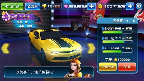 游戏中全球顶级的跑车悉数出场,只要通过努力闯关,就能将豪车全部收入囊中!有特殊变身能力的变形金刚系列,奢侈跑车系列,平民跑车系列等等,让每个阶段的需求都能得到满足。