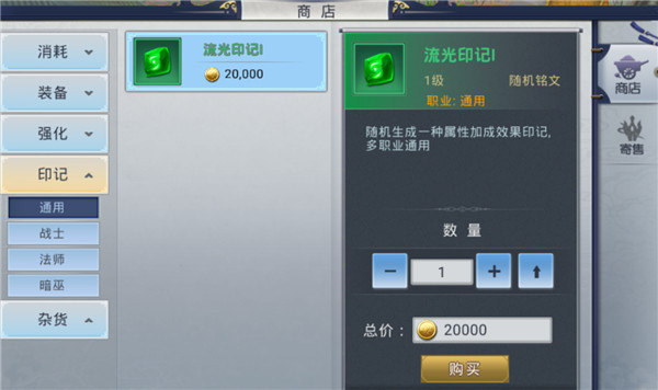 通用印记就是所有角色职业都可以使用的,随机生成一种属性加成效果的印记