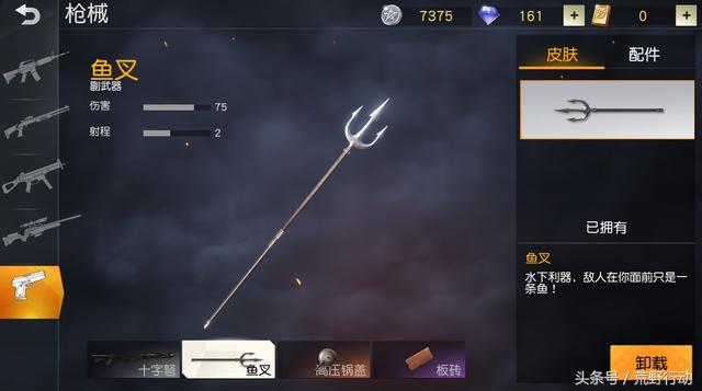 最后一件就是我们的“捕鱼神器”——鱼叉!它是此次更新推出的水陆两栖武器,也是唯一一件能够在水里攻击的冷兵器,带着它下水,水中的敌人就是你眼中的“鱼儿”。