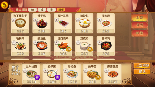 这就是《舌尖上的中国》正版手游中的美食竞技场,游戏中将会定期在此地举办绝对公平的美食竞技赛事。每一期比赛,都会给予赛事一个竞赛主题,然后由系统根据玩家提供的菜品进行打分,分高者获胜。同时,系统会根据主题给予玩家一些菜品搭配建议。例如主题是【自然的馈赠】,则会建议玩家搭配“鲜”和“辣”的食物以得到更高的分数。