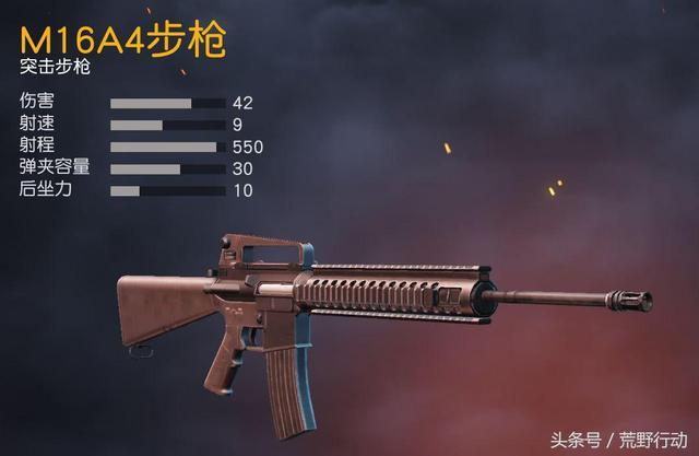 M16A4与其他使用小口径步枪子弹枪械的伤害相近,达到了42,射速、后坐力也维持在不错的水平,整体数值上一点也不输给其他枪械。