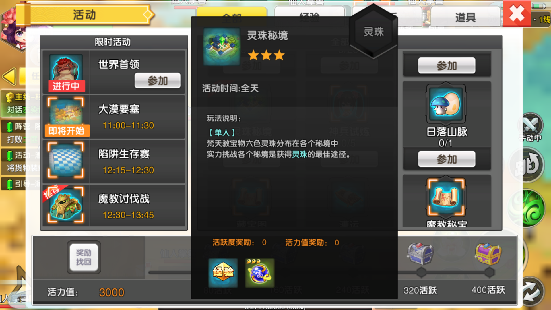 玩家能够在活动界面中通过参加灵珠秘境的活动来进入秘境中。