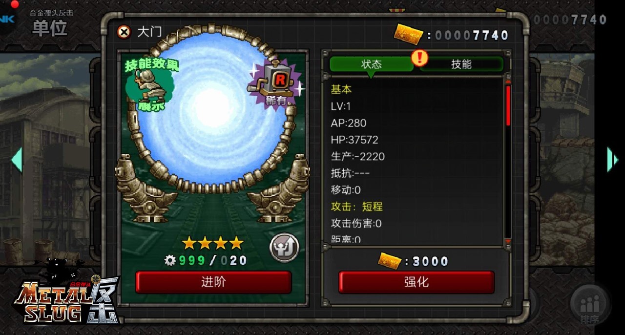 我们的“合金弹头”系列新作《合金弹头反击》在经历了20多天的安卓测试之后,小伙伴们有没有对这部作品有了一定的认识呢?有玩家反馈,众多的单位让人看的眼花缭乱,很多人不知道该用什么比较好,这时候我们来给大家推荐一个强势的单位,一起来看一看未来之门——大门。