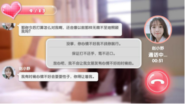 这破游戏都是搞些文字互动,你发给赵小野,她回复你;你打电话给她,她跟你语音聊天。