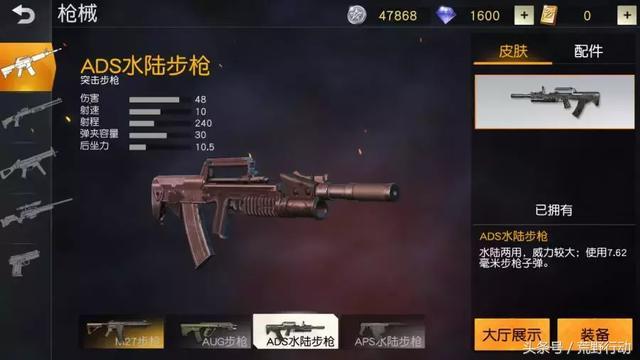 两把水陆步枪ADS和APS,都是7.62家族的新成员,拥有着不俗的伤害,但是射程有限,各位一定要注意,最好是再准备一把普通步枪。