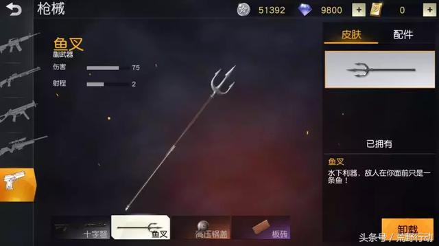 还有冷兵器鱼叉,伤害高达75点,任何敌人在你面前,都只是一条鱼而已。