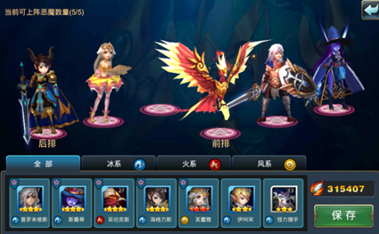 在《魔灵传说》的世界当中,为数众多的恶魔被分成了三个系别,分别是冰火风,三个系别属性之间相互克制,让战斗变得更具有策略性。不仅如此,恶魔本身还具备专属属性,如肉盾、奶妈、远程等等,使得战斗阵容变得更加灵活多变,使得最强战队成为了可能。
