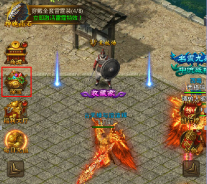 首先,介绍一下探宝玩法的入口,各位勇士可以在游戏主界面的左侧点击【探宝】按钮进入玩法界面。多样道具奖励,绝世稀有装备等你来探索!为证明自己不是非洲人,勇士们不来一发十连吗?