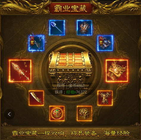 还不够酷炫狂霸拽?霸业神剑和霸业面甲实现你的愿望!作为玛法大陆中最强大也是最稀有的武器,是成就霸业之路不可缺少的装备,酷炫的外显让你与众不同!手气不能一发入魂也不必担心,集齐霸业宝珠同样可以兑换神装!