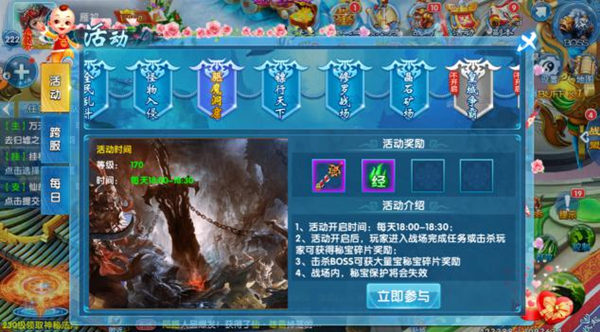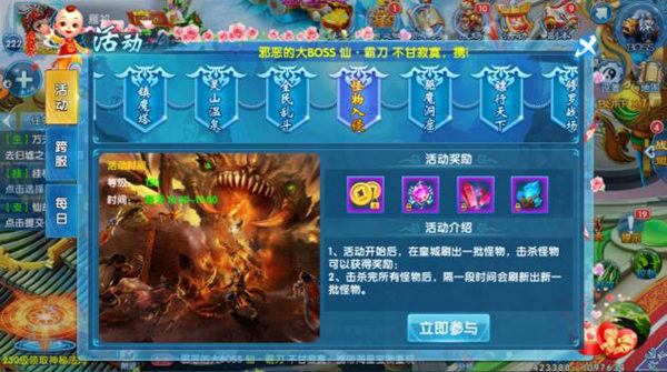 驱魔洞窟:此活动既能玩家之间对决,也能联手起来对抗BOSS,两者所获得的奖励类型都是一样的。如果你是个不安分子,到处寻找对手大战一场是最好的选择,否则和其他玩家联手虐下BOSS也是不错的哦!