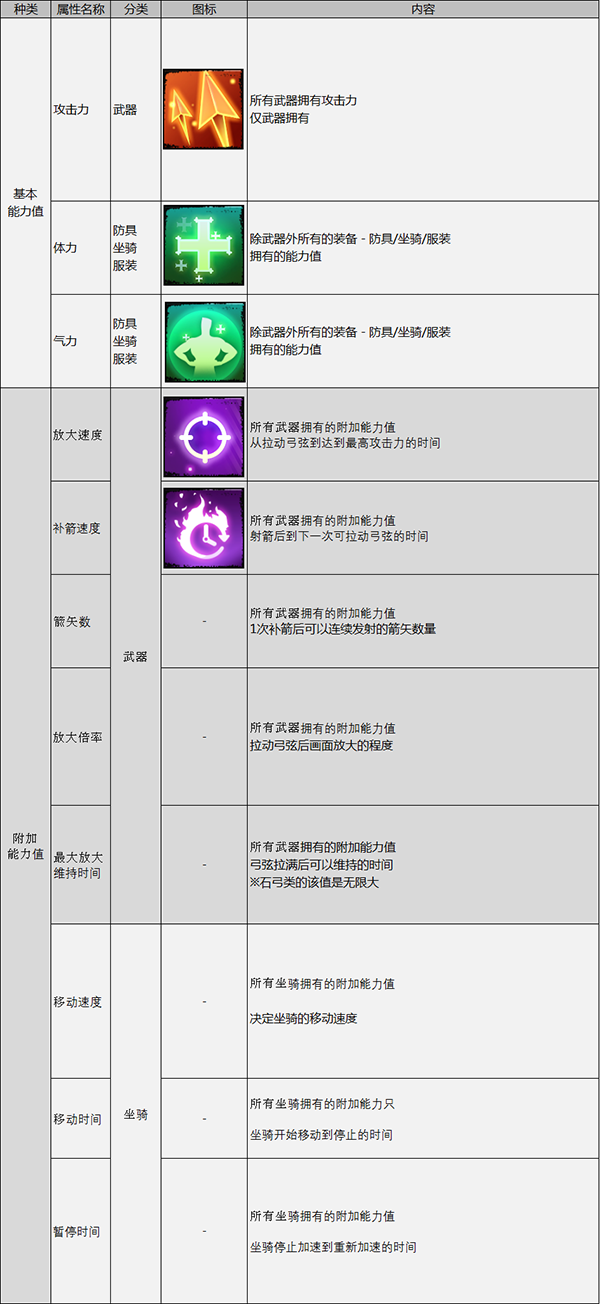 基础能力值备注 1:所有装备/武器基本拥有的能力值 2:所有装备拥有1种基本能力值 【关于《战箭天下》】 《战箭天下》(Battle Of Arrow),是一款1对1轻竞技对战手游。游戏以骑马射箭..