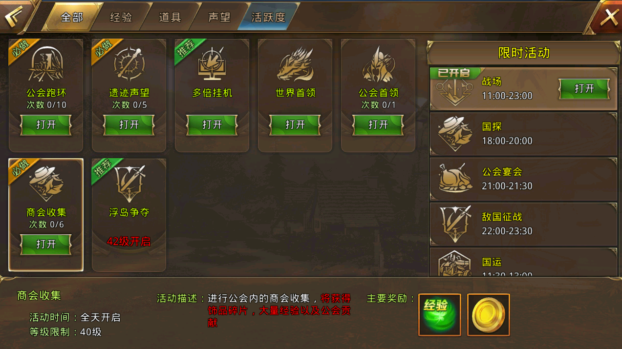 商会收集玩法是进行公会内的商会收集,该玩法在40级解锁。参与就能获得饰品碎片、大量经验及公会贡献,参与条件之一就是要加入公会。下面来详细说说如何参与吧。