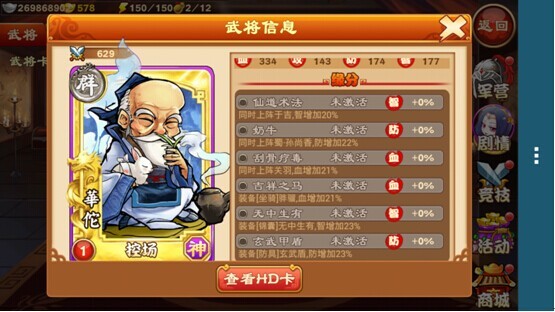 除了玄武甲和蜀香以外,其他的缘都不算很遥远,骅骝、于吉目前还能买,关羽活动做过很多期了,无中生有活动送过。也就是说,对于比较活跃的玩家来说,华佗可以做到上手4缘,直接提升42%的血和43%的智,非常有效直观、有效,触手可及。