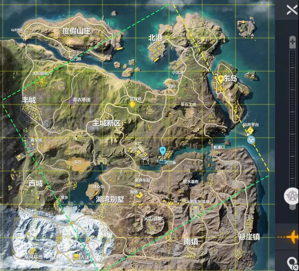 因为信号圈必然往航线的中间刷新,且大概率往足球场附近刷新,所以我们在选择降落地点的时候就要有所安排。
