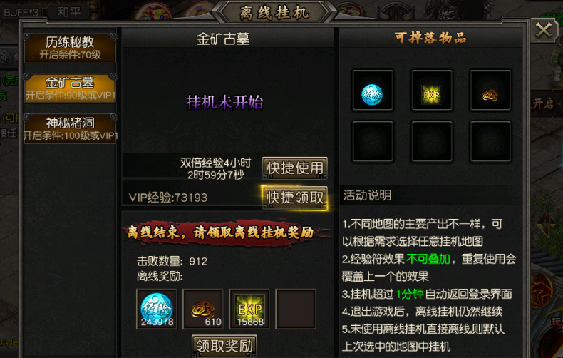 5:未使用离线挂机直接离线则是默认上一次选中的地图挂机