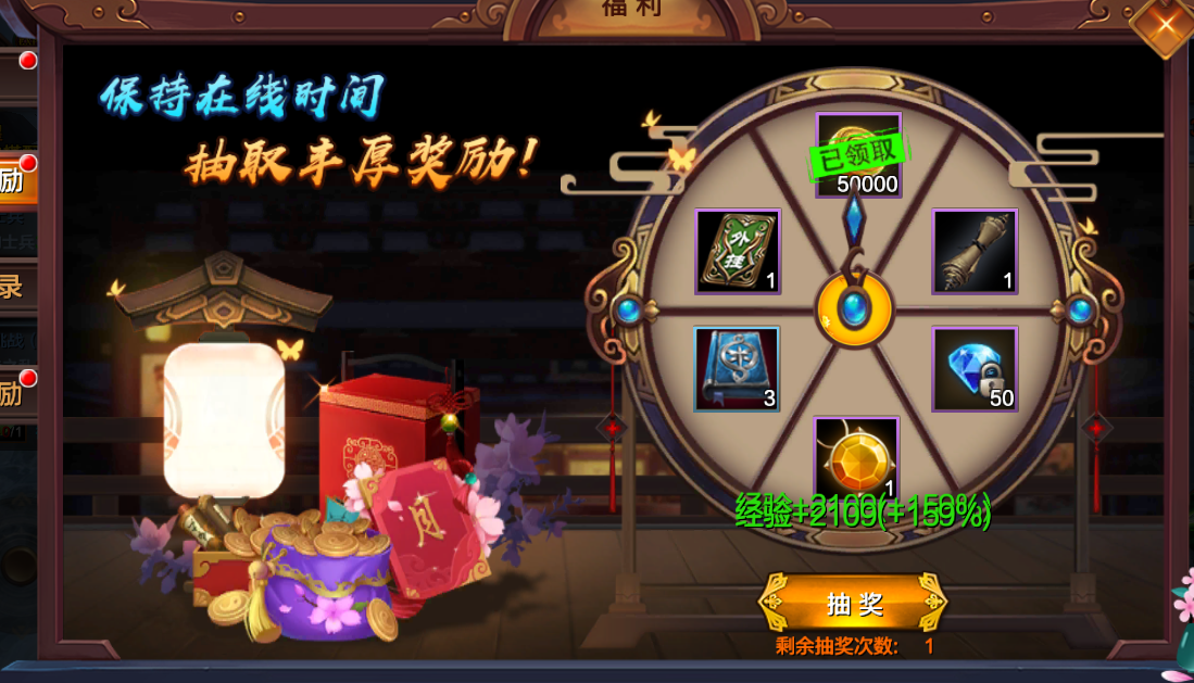 2. 在线奖励:如名字一样,只要您在线就会获得抽将的机会,对于大多数玩家来说是相对实用的(抽将次数可以内积上线次数为6次)