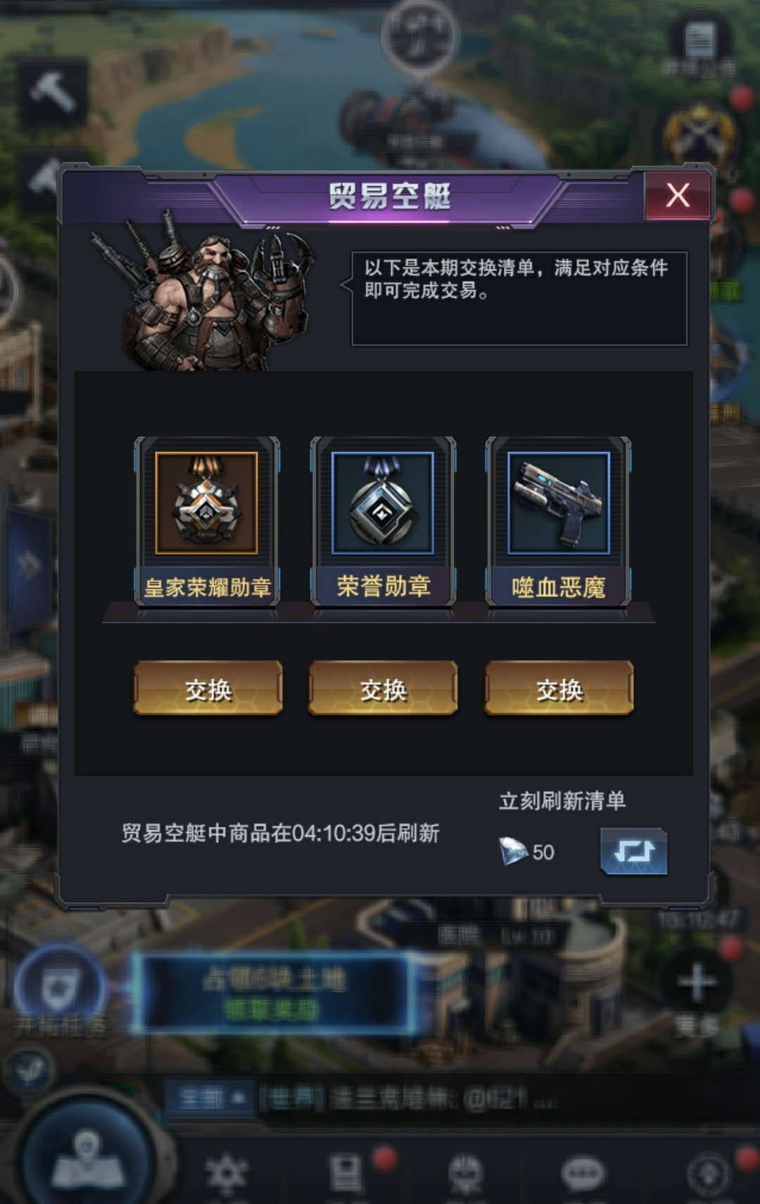 基地内的贸易空艇处,经常会出现不同品质的装备,当提升市政厅到24级后,贸易空艇将有可能出现可交换的橙阶装备;