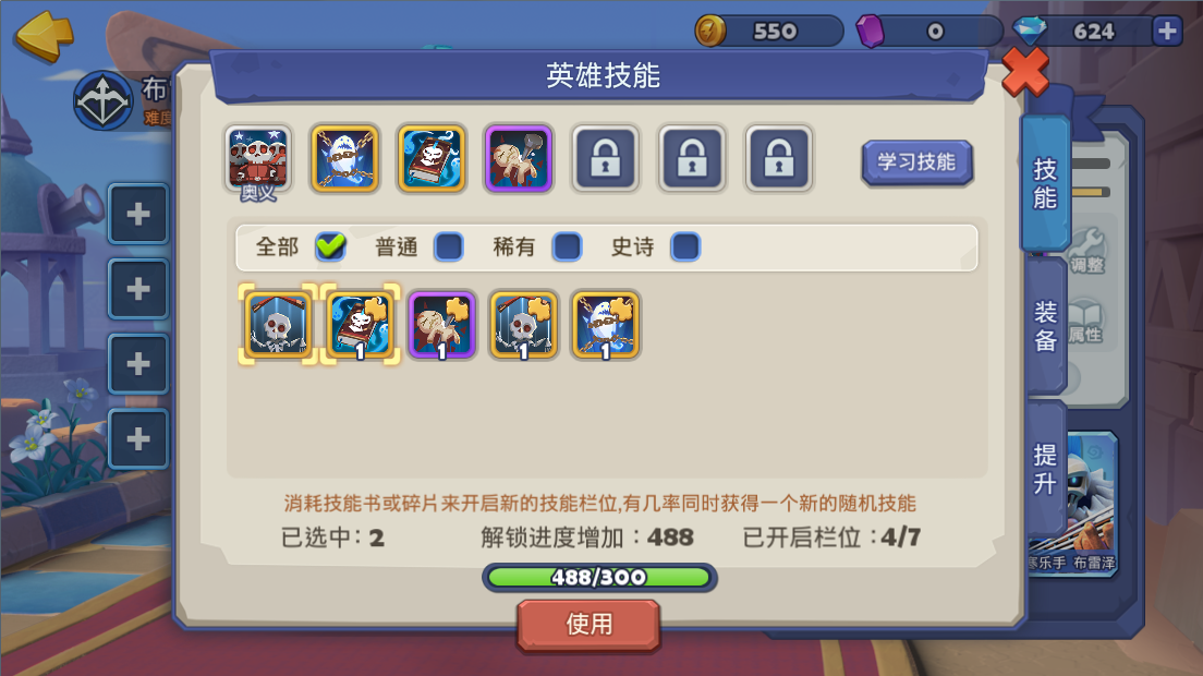 解锁技能槽可通过使用技能书和技能书碎片的方式进行解锁,解锁之后,可再次学习其他技能。