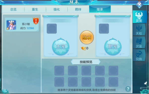 7、通过消耗一定元宝,使得主宠继承副宠的某些属性,获得比自己高的等级和资质。