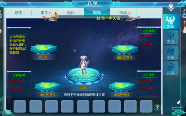 6、羁绊可为出战灵宠增加属性加成,副宠能力越强,主宠的属性加成越高。