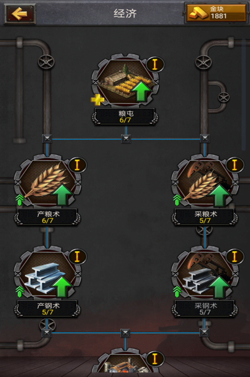 科技的加点是在科技中心里操作的,分为4大方向,经济、城市、战斗、城防