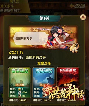 每个关卡都有三个难度:简单、普通、困难,对应不同的奖励,玩家根据自己的战力选择挑战难度闯关,挑战关卡达到特定次数可以选择buff加成,增加成功率。每次挑战结束后,凌虚阁的器魂商店有特惠道具可以购买。