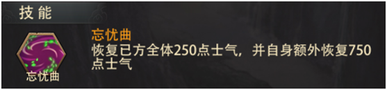 恢复已方全体250点士气,并自身额外恢复750点士气