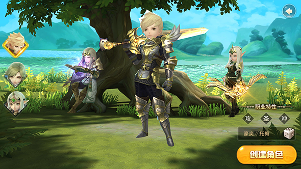 玩家最初进入游戏界面,选择相应的角色后可开启游戏,每个账号最多可以创建三个角色