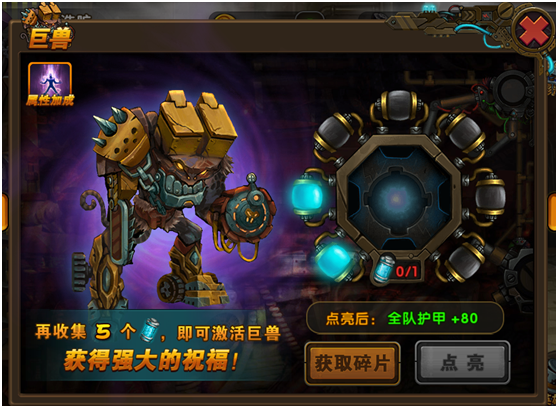 在游戏中,玩家集齐一定数量的异能源,就能激活巨兽,获得强大的力量。