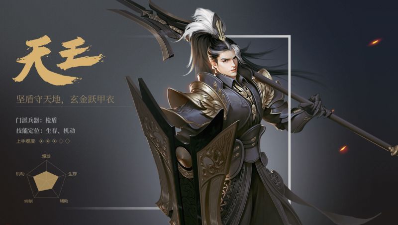 天王众将以枪法见长,高防御和高血量使其有强大的生存能力,激发战意后可在敌阵中横行无忌,冲锋陷阵。