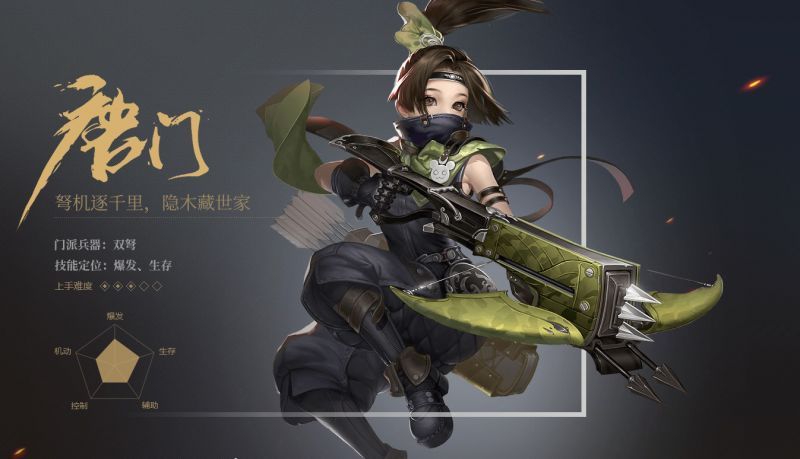 唐门武学以高暴击而闻名,其下弟子皆有着强悍的远程输出能力,独门机关暗器更是令江湖中人人闻风而丧胆。