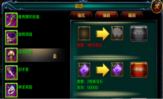 当我们获取到高等级的宝石时,就可以让宝石升级来获得更强大的属性。